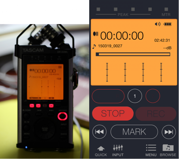 TASCAM DR-22WL以及DR-44WL是TASCAM最新推出的便攜式錄音機(jī),內(nèi)置一對(duì)XY制式的立體聲電容話筒,最高支持96k/24bit的采樣格式,其中DR-44WL還配備一對(duì)XLR外接輸入,可以最多同時(shí)進(jìn)行4軌錄音。其中最受矚目的當(dāng)然是其搭載的WIFI無線遙控功能,可以用于遙控錄音與文件傳輸。