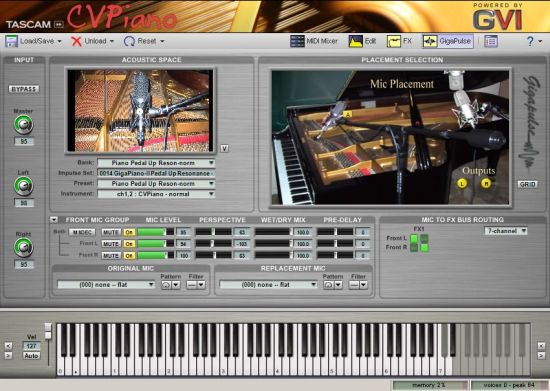 GVI是Giga Virtual Instrument的簡稱,也就是插件版的GigaStudio。而CVPiano則是Continuous Velocity Piano(持續(xù)力度鋼琴)的簡稱,一個(gè)用GVI做外殼的插件,利用GVI的采樣引擎的鋼琴插件,支持VSTi和RTAS格式,當(dāng)然你也可以獨(dú)立運(yùn)行CVPiano,但你沒可能用CVPiano去加載其它GVI音色或是Giga音色,因?yàn)樗荒芑胤拧?/p>