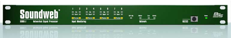 Soundweb 的 9088iis 數(shù)字信號處理單元是 Soundweb 系統(tǒng)的核心。作為一個獨立的1U機(jī)架空間設(shè)設(shè)備,Soundweb 9088iis 配置了完善的 8 信道輸入、8 信道輸出和 1 個高性能 DSP 處理器,網(wǎng)絡(luò)連接和其它 Soundweb 設(shè)備的信號分配,模塊的 GPI 控制接口的 RS232 接口,可用于連接 PC 或 AMX/Crestron 等外部控制設(shè)備。